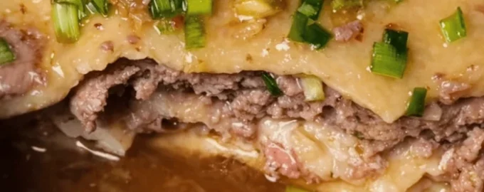 Toto jedlo sa pripravuje vo vrstvách: tenké cesto, šťavnaté mleté mäso a pikantná omáčka. Výsledok je niečo medzi knedľou na pare a orientálnou verziou lasagní.