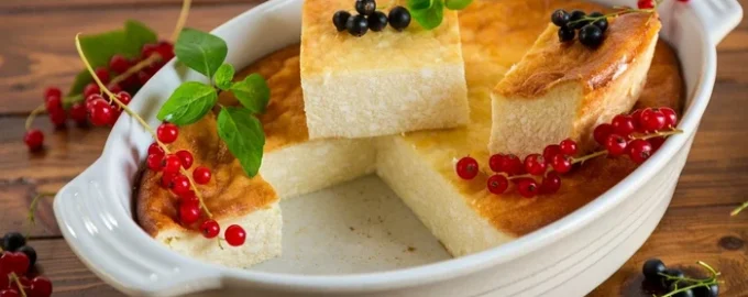 Tvarohový nákyp so škrobom, varený bez múky a krupice, výsledok je ľahký, jemný a vzdušný. Podávajte na raňajky alebo ako dezert s kyslou smotanou, džemom alebo medom.